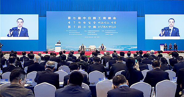 12月24日,由中國貿促會、韓國大韓商工會議所、日本經濟團體聯合會共同主辦的第七屆中日韓工商峰會在成都隆重舉行,中日韓三國領導人出席會議。此次峰會以“科技引領合作,創新促進發展”和“綠色改變生活,健康和諧…